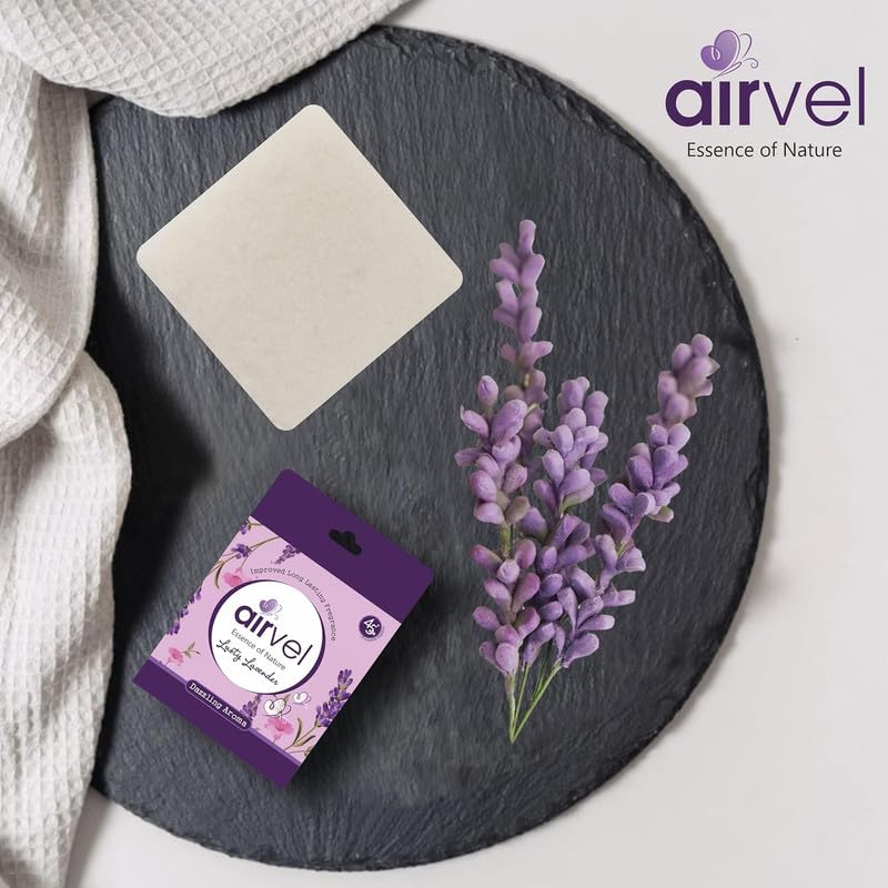 AVAILABLE IN 4 REFRESHING SCENTS: Airvel air freshener blocks are available in four delightful fragrances—Jasmine, Lavender, Sandal, and Rose—offering a variety of options to suit your preferences.