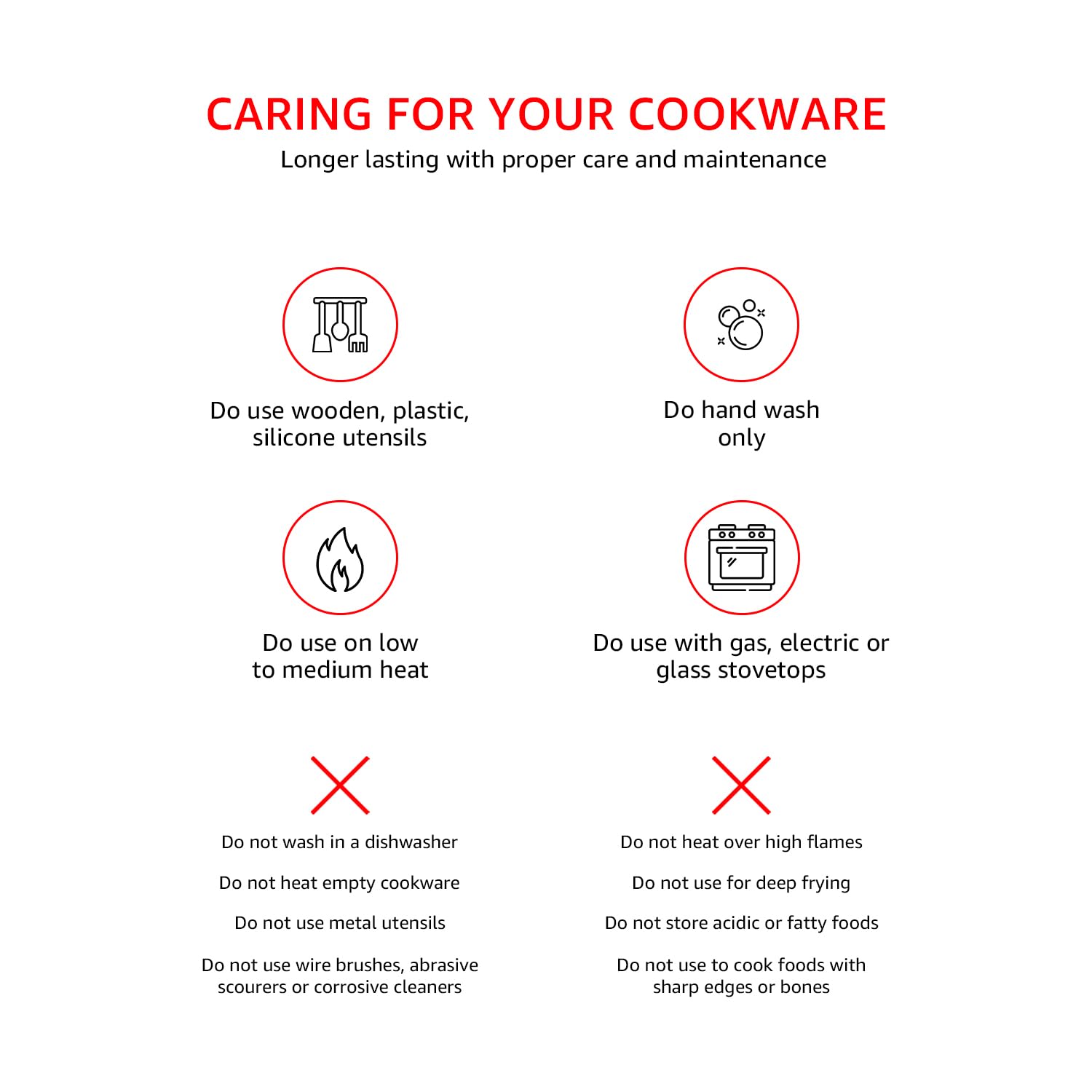 The cookware set is extremely easy to clean, wash and maintain as it does not allow any leftover residue in it. Being dishwasher safe, you can use any regular dishwasher to clean it after cooking and serving.