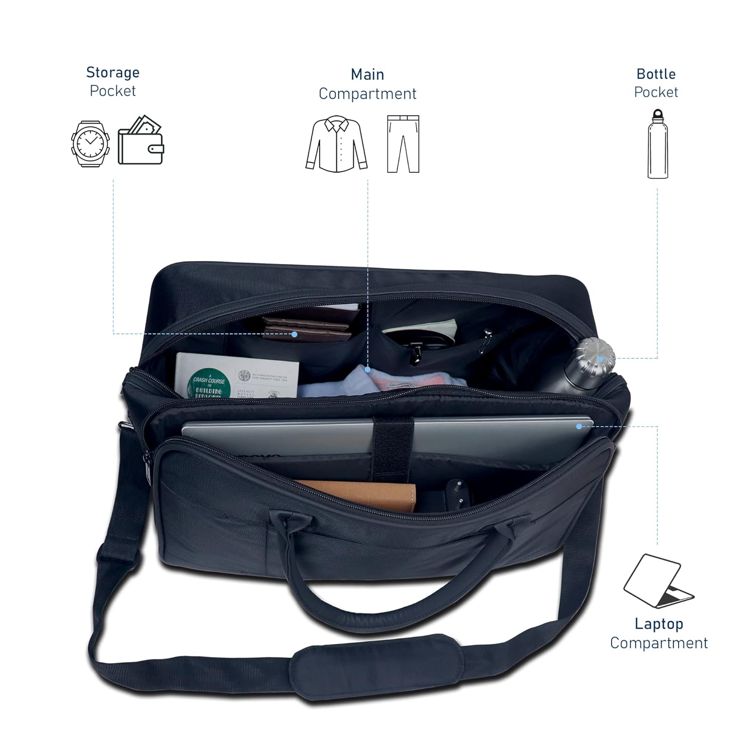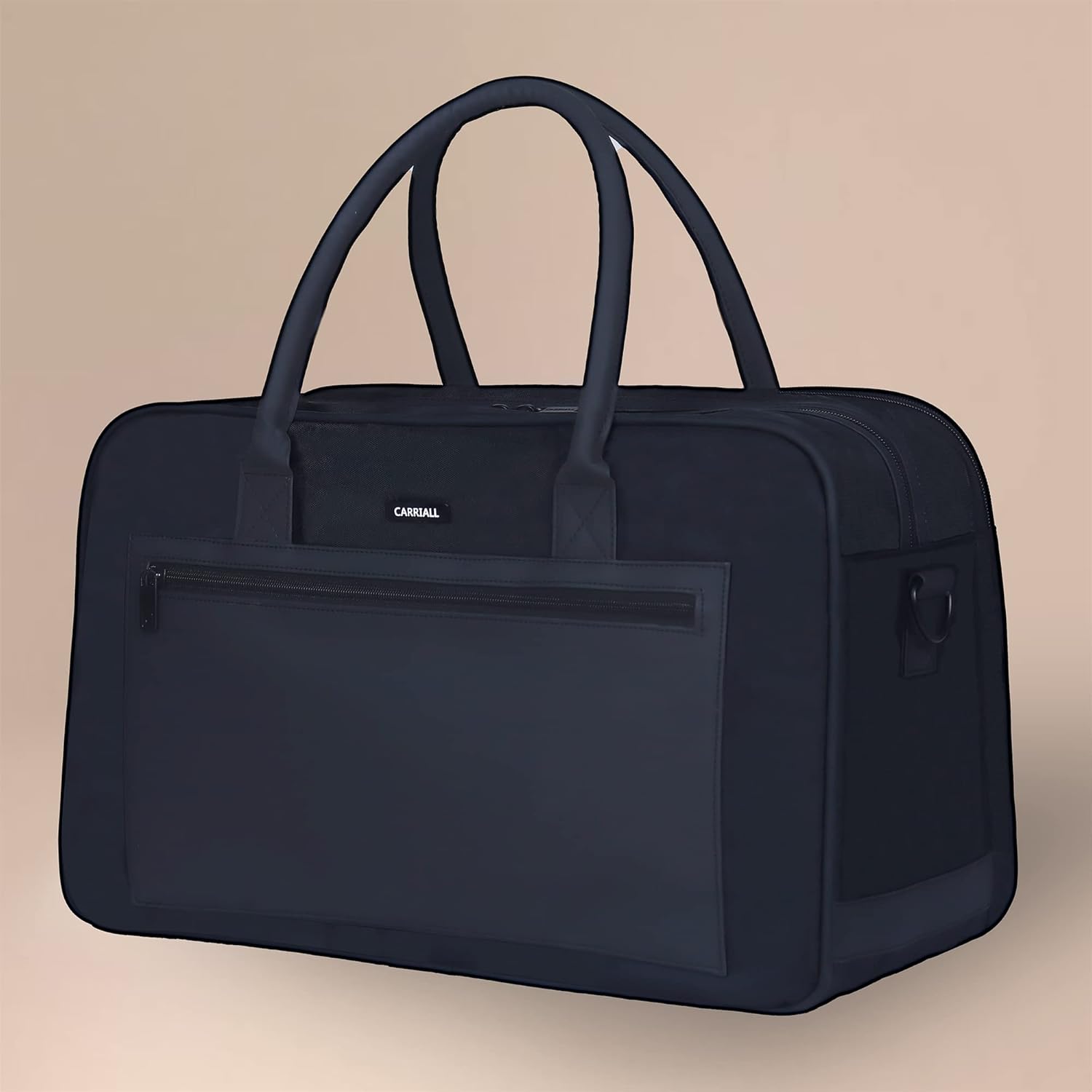 The Carriall Duffle Bag for travel and gym is a versatile travel essential for men and women, perfect for vacations, business trips, gym sessions, and weekend getaways. It features a spacious main compartment with mesh and storage pockets, detachable straps, and a padded laptop compartment, ideal for organizing essentials like your iPhone, MacBook, Android, and gym shaker. Made from durable polyester with bottom studs, this 28L luggage bag offers ample storage space to efficiently pack clothes, gadgets, and accessories while ensuring long-lasting protection for your belongings.