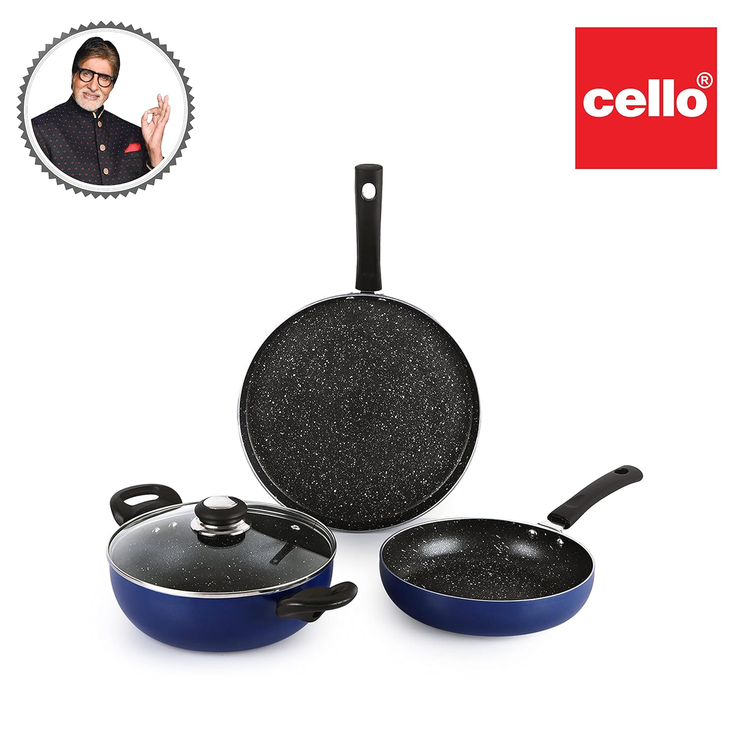 Now prepare delicious meals with Cello’s 3 Piece Regal Non-stick Cookware Set. Made of premium quality non stick coating the cookware set is durable and built to last. Perfect for the modern home cook the cookware set with it’s range of vibrant colours has something for everyone to choose from. Both gas stove and induction compatible this cookware set is versatile enough to meet your requirements and lifestyle. Non stick coating ensures less usage of oil while cooking making the cookware the perfect choice for a healthy lifestyle.