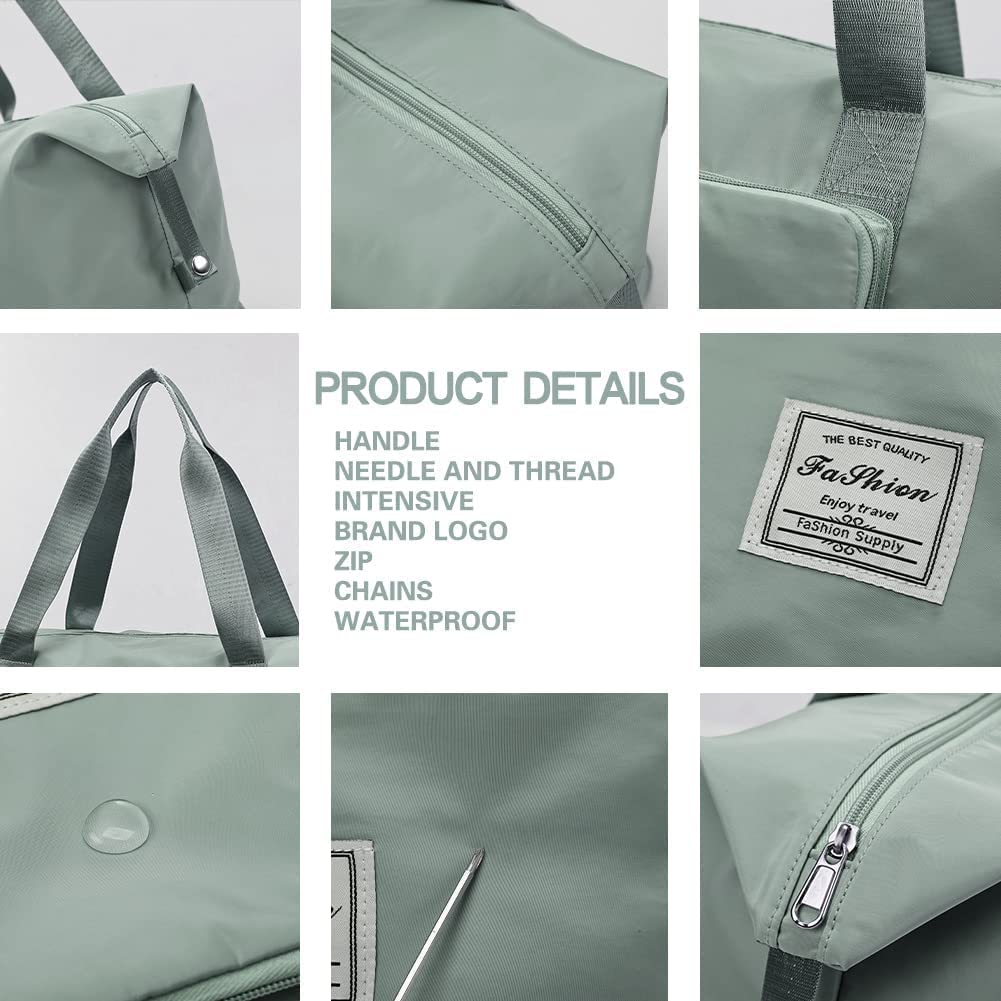 The Travel Foldable Duffel Bag is Made with lightweight waterproof and tear-resistant Oxford fabric, solid, anti-wrinkle, wear-resistant, waterproof, easy to scrub durable, and strong enough to carry.The extended function is hidden at the bottom of the zipper, allowing you to solve the troubles caused by too many or too few items during travel.This sports tote gym bag has a high-density water-resistant material that can help you to separate dry items and wet items.Suitable for women, men, teens, and big kids.A short trip is enough. You can easily store your travel equipment for 3-5 days.