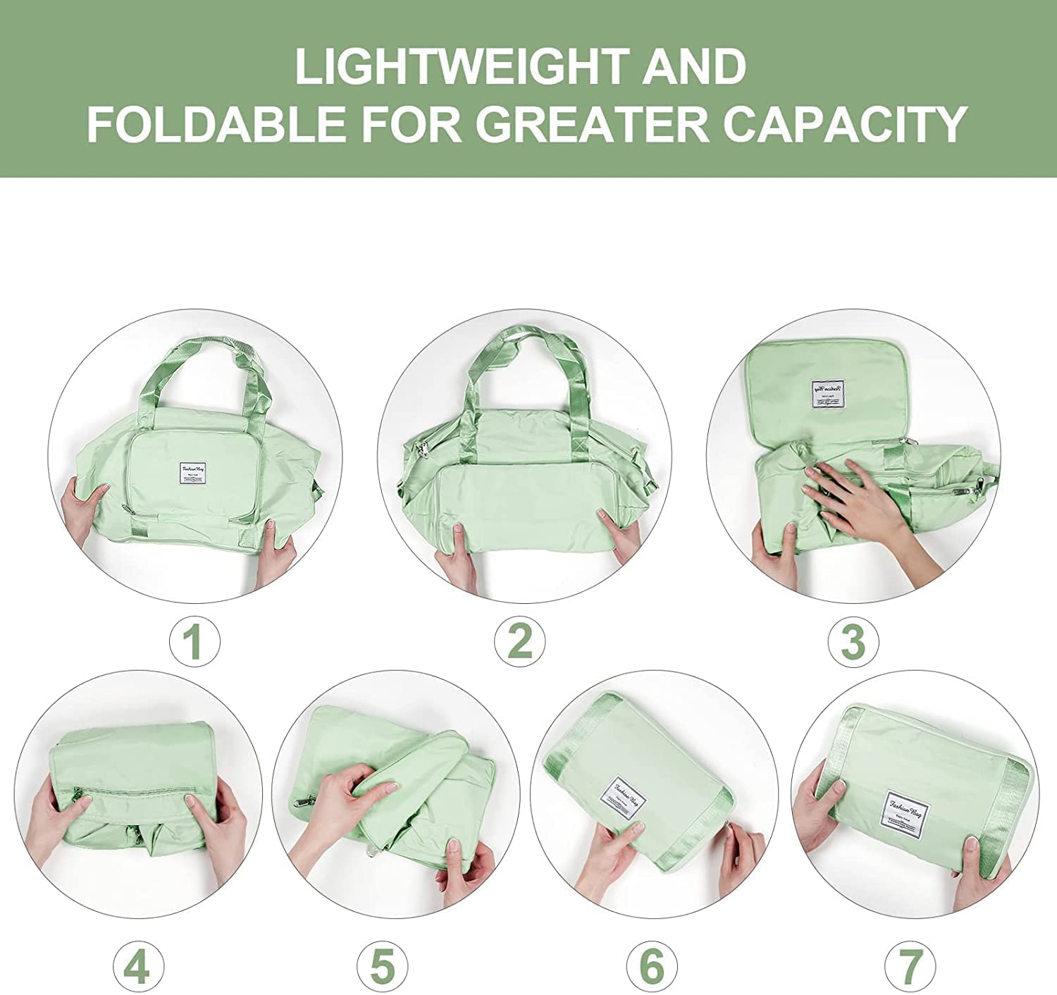 EXPANDABLE TRAVEL BAG:- Friendly shoulder travel duffle bag for women, 2 levels of expansion. After unfolding, the folding travel bag will rise from 8.6 inches to 12.6 or 16.5 inches. The trolley sleeve fixes the bag to the suitcase to reduce the burden of the journey. You can put your ticket, passport, and mobile phone in your luggage case.