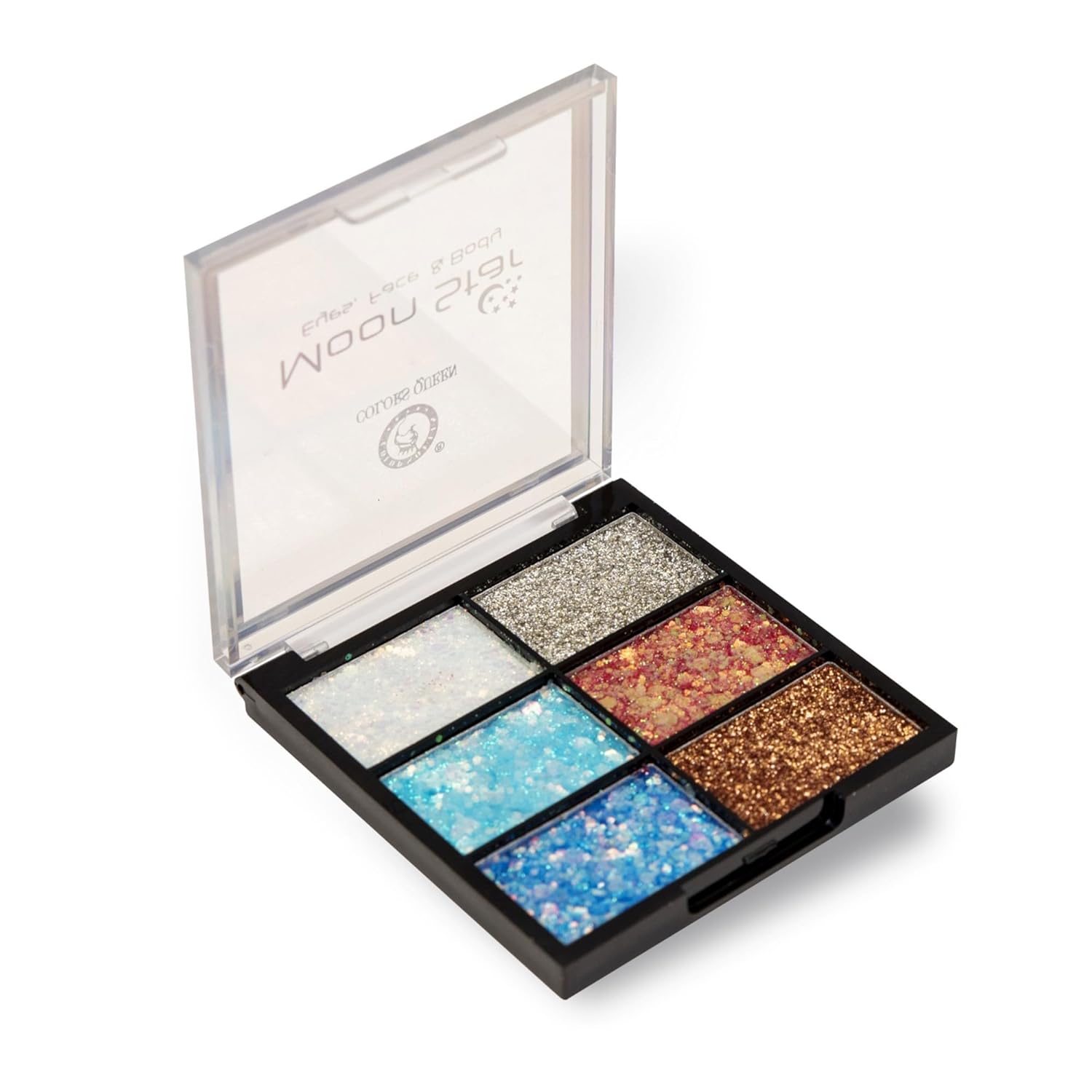 The Colors Queen Moon Star Eye, Face, & Body Highlighter Is a delicate, baked soft sparkler for face, eyes and body. It adds a sophisticated finish to your makeup. A subtle combination of colors with the diversity of shimmering particles brings out the inner glow of your skin. The Colors Queen Moon Star Eyes, Face,& Body Highlighter Is Good And High Quality Product.