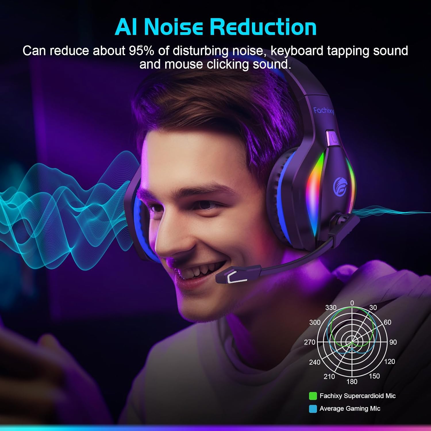 🎁Professional and comfortable design, cool shape and RGB lights. The Fachixy FC-100 Wireless Gaming Headset with Microphone is a great gift idea for 🎄Christmas and birthdays, boys and girls, family and friends🎁