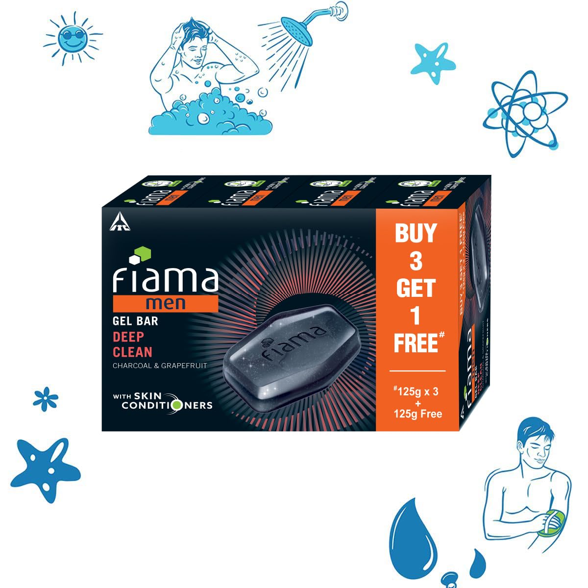 So wash away the tiredness from your body and mind and rejuvenate yourself with Fiama Men Deep Clean Gel Bathing Bar.