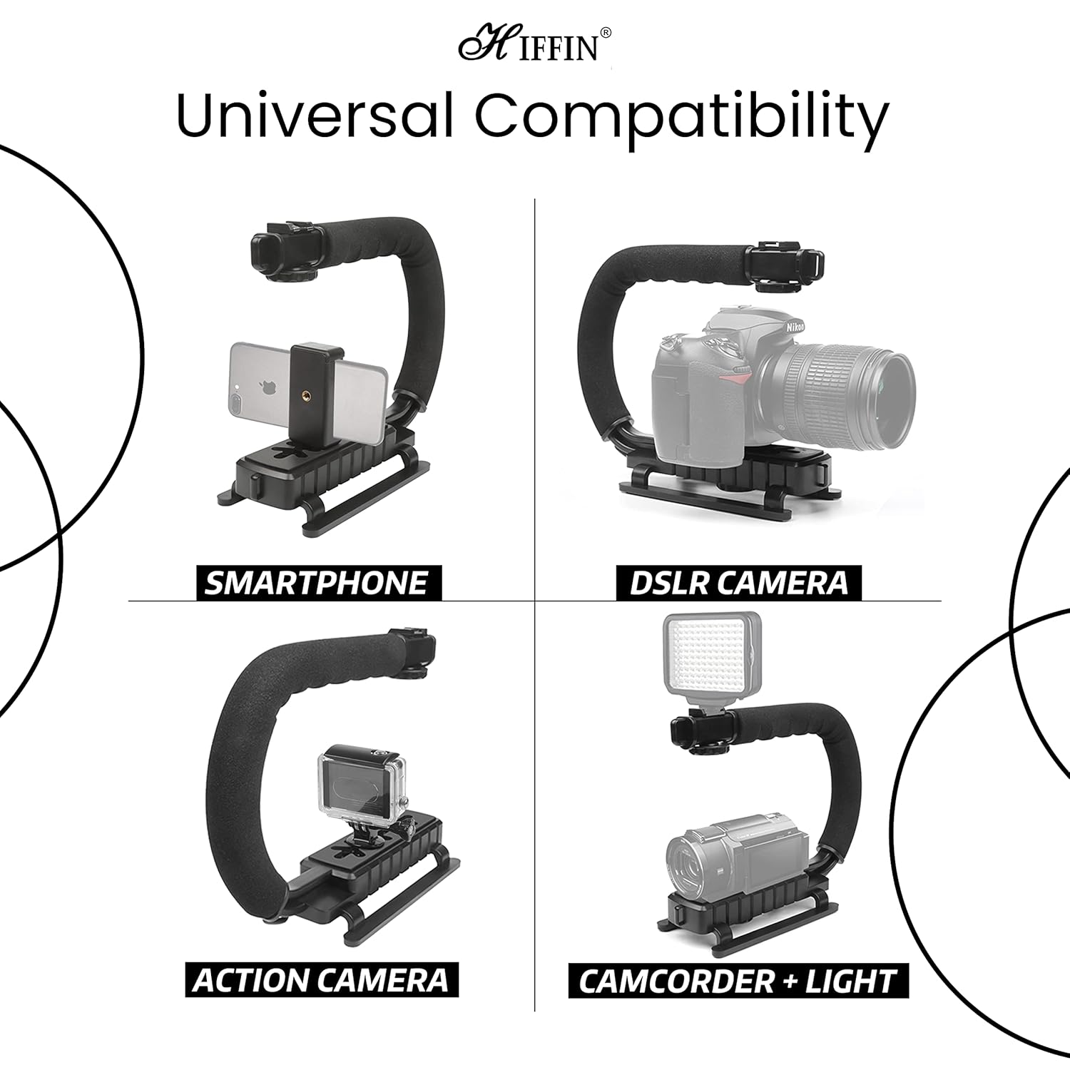 HIFFIN Universal Stabilizer C-Shape Bracket Low Position Shooting System Camera Rig Support Bracket Video Handheld Grip Professional Vlogging Fit for DSLR Cameras