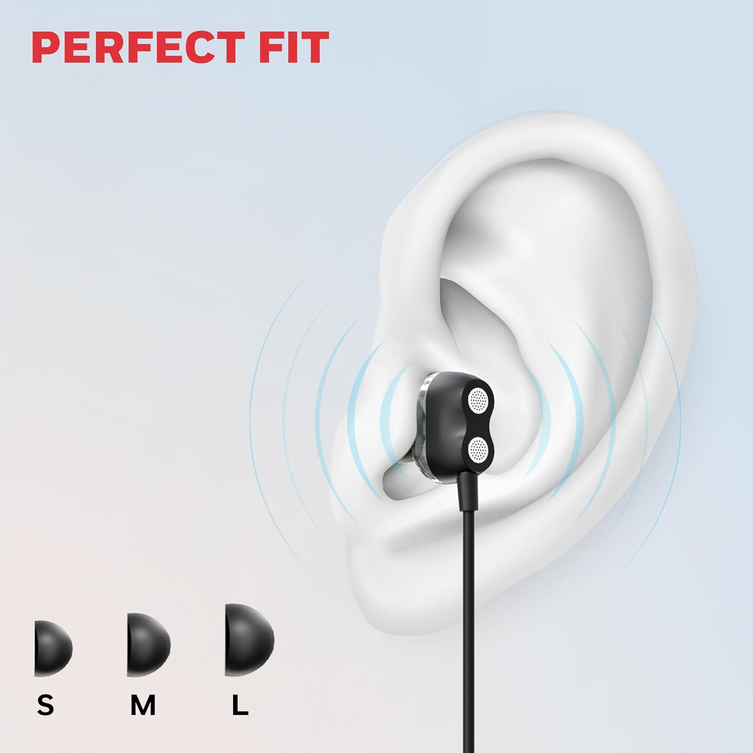 Design and Comfort: Built to fit your lifestyle, these in-ear wired earphones sport a lightweight frame, plush ear cushions, and a sturdy cable, combining comfort and durability like never before. Comes with 3 sizes of earbud cushions (S, M, L) so you get a fit that feels made just for you, all-day comfort, zero slips.