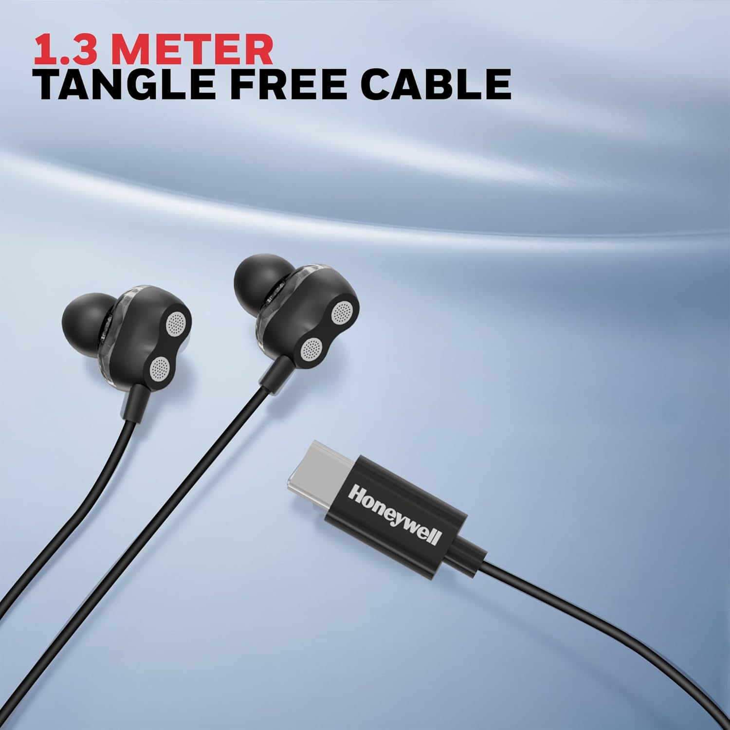 Honeywell Suono P80 Wired Gaming In Ear Earphones with Built-in Mic, 8mm*4 Drivers, IPX4, Noise Cancelling and ultra HD Mic, HD Sound & Clear Audio, Type C Compatible, Voice Assistant Enabled, 1.3 Mtr