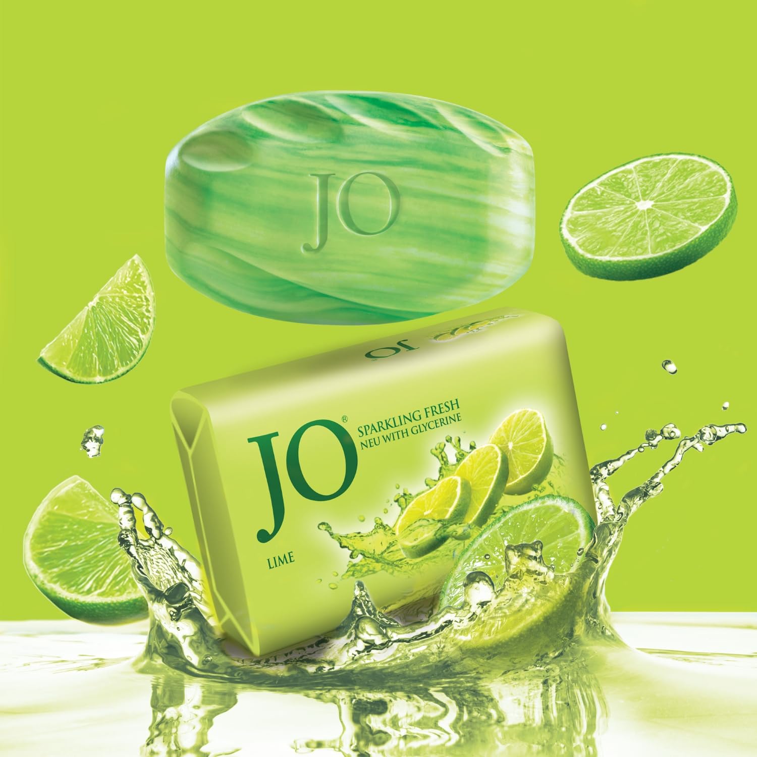 Jo beauty soap with fresh lime fragrance & goodness of moisturizers, gives you fresh & active feel with the added benefit of soft & moisturising skin post bath.