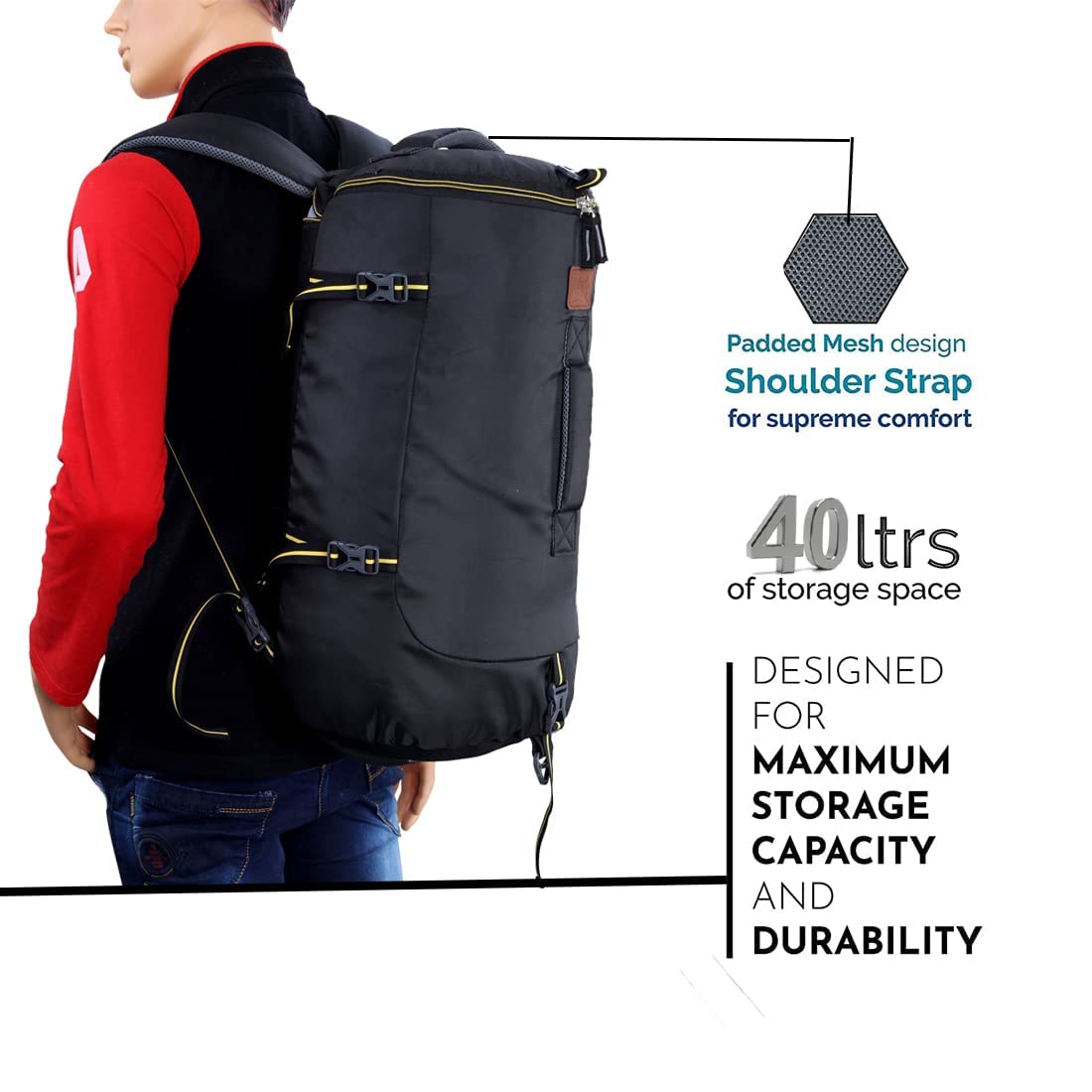 Be ready for your Mountain Adventures with this hybrid duffel bag trekking backpack! This bag has an industrial look with clear lines that look great in any environment: going to the gym, to work or on a weekend trip. Only for those who dare! Take this Duffel Rucksack anywhere. Gym, office, airplane or train. You will have plenty of storage that is expandable, comfortable and adapts to your needs. So you only need to take this single bag with you. It does not matter if you are gone for a day or the weekend.