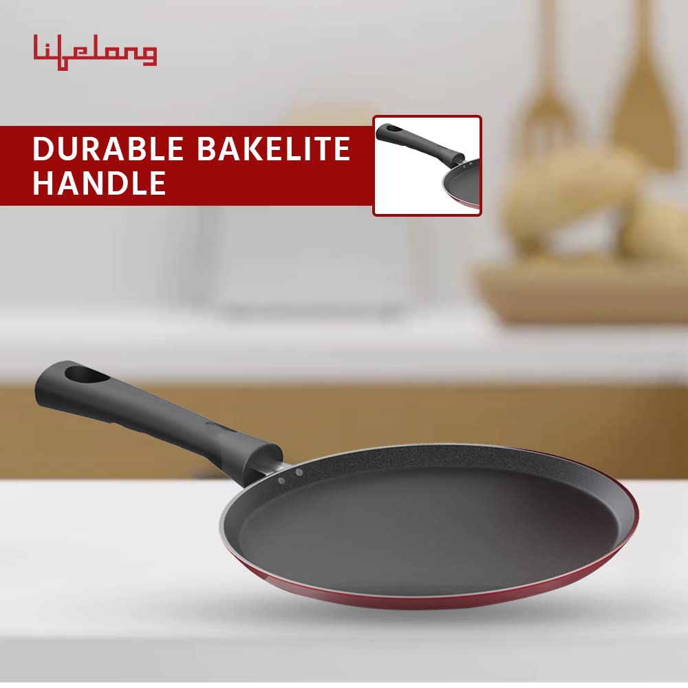 Made of fine quality aluminium, the Tawa ensures uniform heating and a non-stick cooking experience while cooking Dosas, Chapatis, Paratha etc. Lifelong cookware will easily become your go-to utensils for everyday cooking, thanks to their even distribution of heat and faster cooking. Enjoy scrumptious meals without worrying about sticking and burning of food.