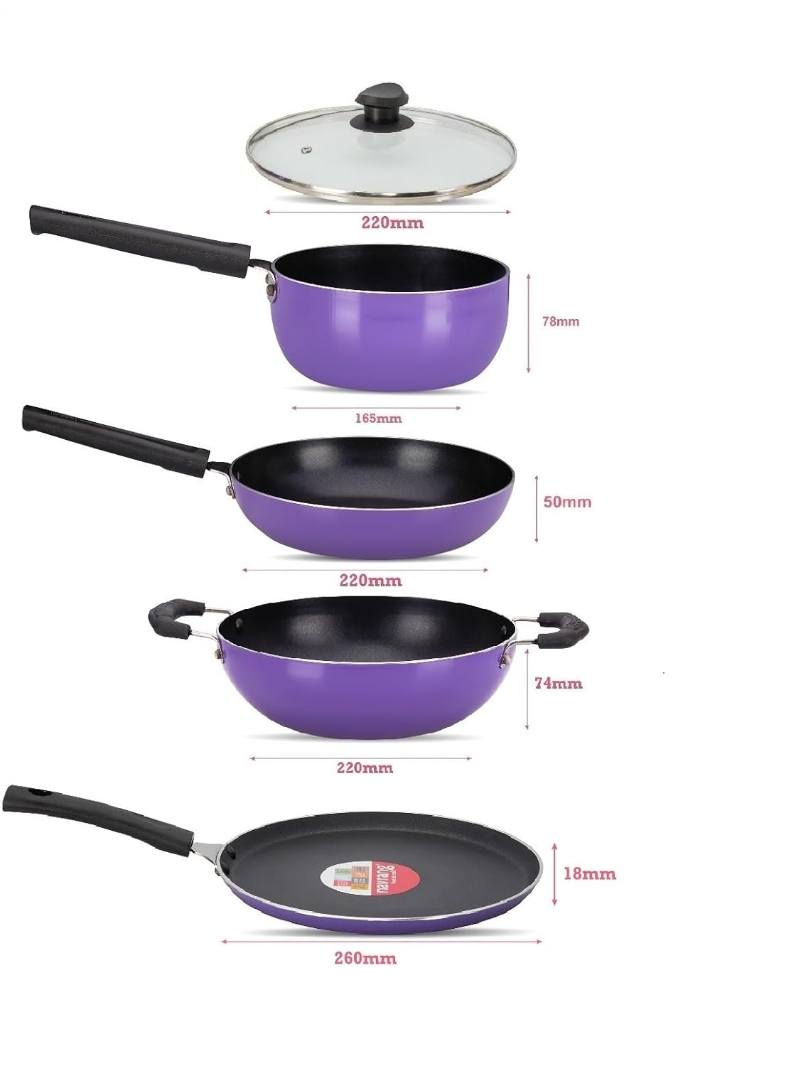 Ergonomic Design: Designed for comfort and convenience, both the tawa and kadhai feature sturdy handles that offer a secure grip and stay cool to the touch during cooking. Handle your cookware with confidence and ease.