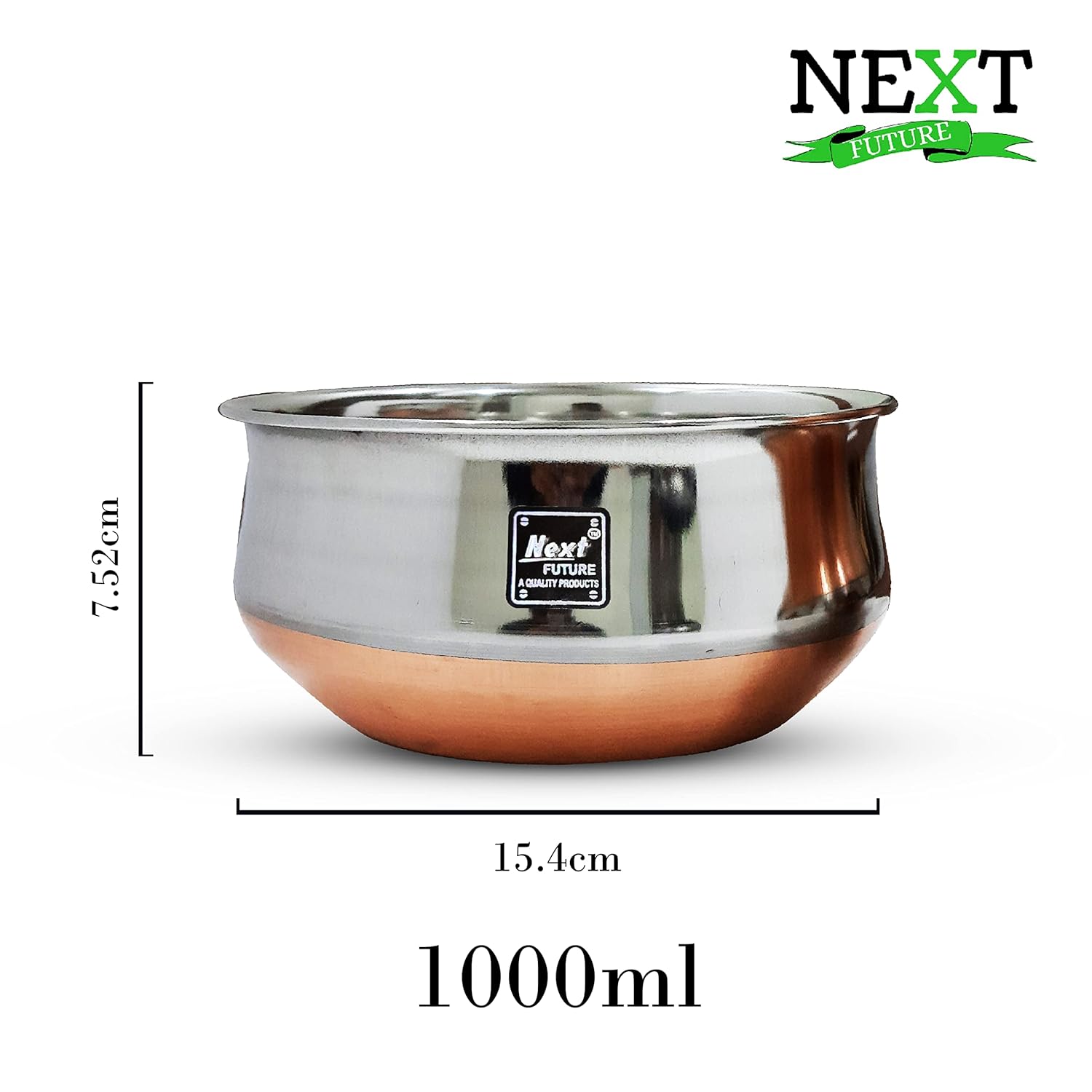Next Future Stainless Steel Copper Bottom Handi, Cooking Serving Bowl, Cookware Set of 3 Pieces Size: 600ml, 1000ml, 1500ml (Copper Bottom, Stainless Steel)