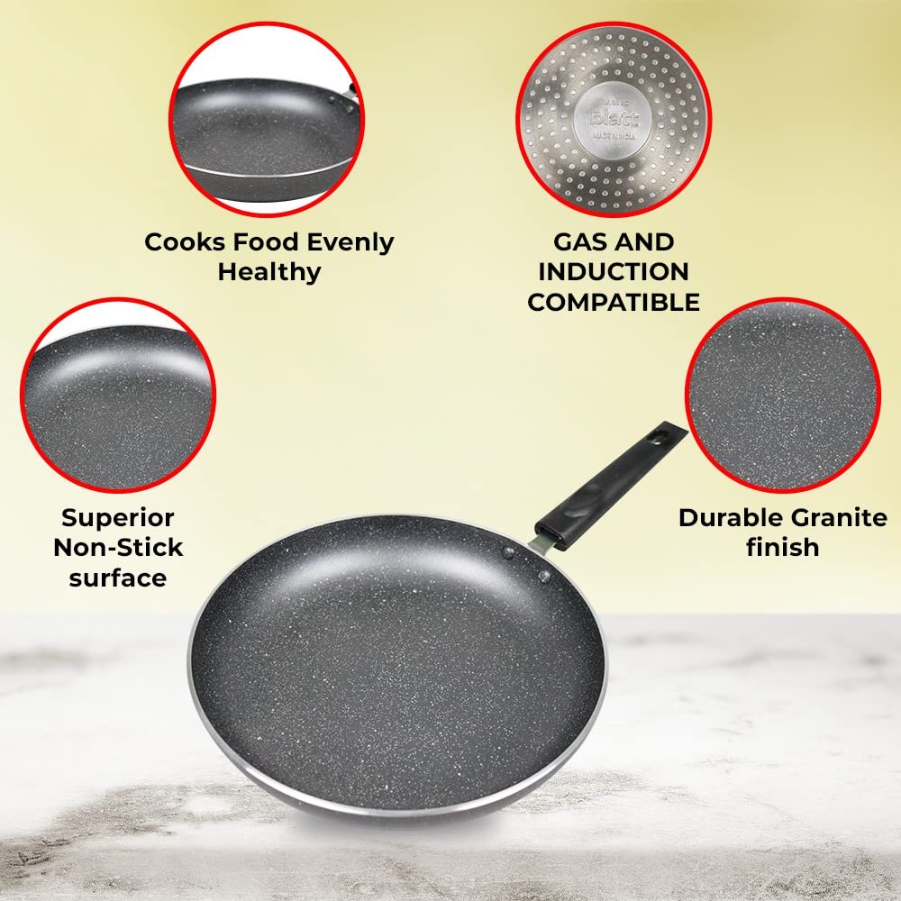 Durable Granite finish, Superior Non-Stick surface, No. of layers: 3 Layer, 2.4mm thickness, Dishwasher safe.