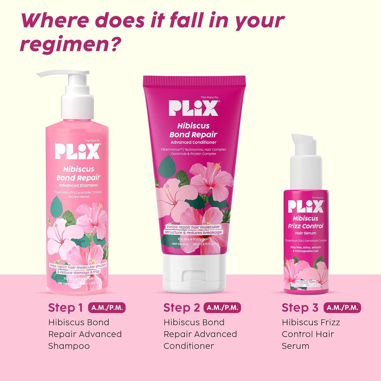 The Hibiscus Frizz Control Expert Pack (Serum + Shampoo + Conditioner) is your ultimate solution for smooth, frizz-free hair. Formulated to repair and strengthen, this trio is designed to tackle damaged, weak, and frizzy hair. The shampoo deeply cleanses while strengthening with FiberHance and nourishing the scalp with Hibiscus Extract. The conditioner strengthens hair bonds with FiberHance and provides intense hydration with TechnoHYAL Hair Complex, leaving your hair soft, silky, and frizz-free. Finally, the serum, enriched with Bio.Elixir and Hibiscus Oil, adds shine, reduces breakage, and helps control flyaways. This powerful combo is perfect for all hair types, from straight to coily, and is especially effective for dry, brittle, or color-treated hair.
