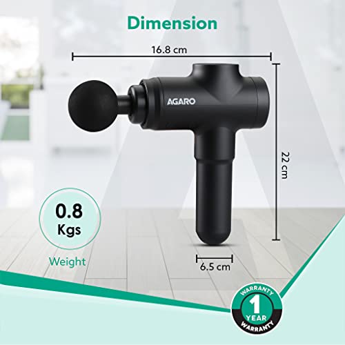 Specification: AGARO Strike Handheld Percussion Massage Gun, Rechargeable, 6 Interchangeable Massage Heads, 20 Speed Settings, With Carry Case, For Deep Tissue Massage, Body Relaxation, Pain Relief (Black)