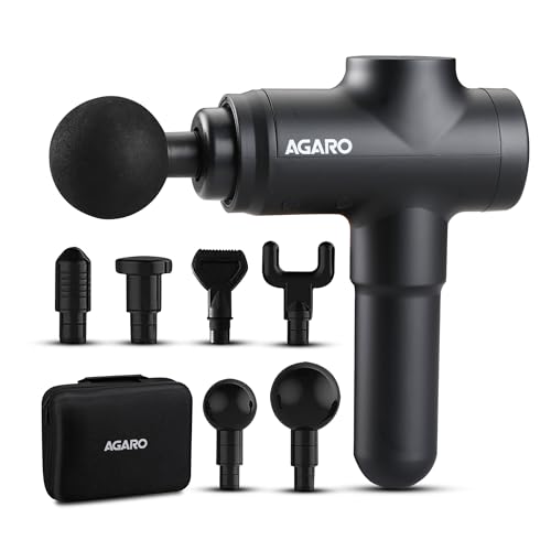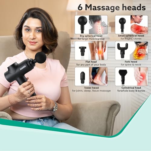 AGARO Strike Handheld Percussion Massage Gun, Rechargeable, 6 Interchangeable Massage Heads, 20 Speed Settings, With Carry Case, For Deep Tissue Massage, Body Relaxation, Pain Relief (Black)