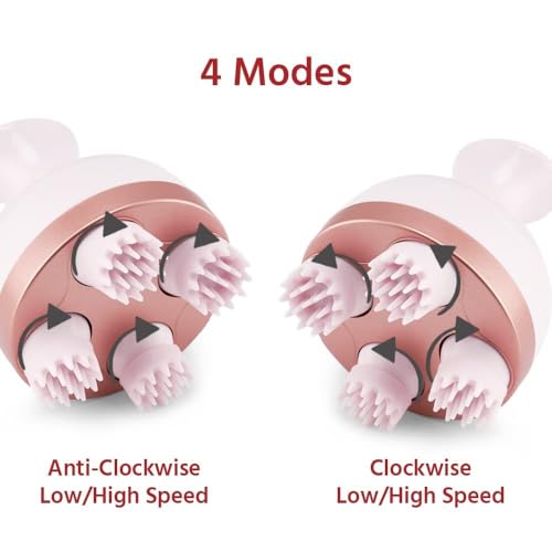 AIRSEE Electric Scalp Head Massager,Full Body Pain Relief Massager,Electric Head Kneading Massager,4 Speed Modes,Handheld Portable Head Scratcher For Hair Adults,Elders,Home,Travel Slee(Multi Colors)