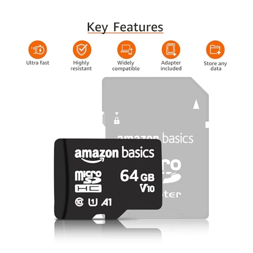 Specification: Amazon Basics 64 GB Micro SD Card with Adapter | Upto 120 MB/s | Class 10 | U1, C10, V10 Speed Classes