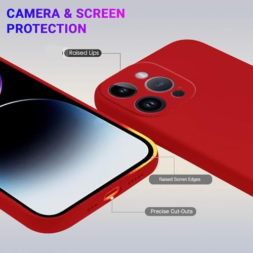amazon basics Mobile Cover for Apple iPhone 14 Pro | Full Camera Protection | Premium Liquid Silicon Case | Flexible Bumper Case for Apple iPhone 14 Pro (Red)