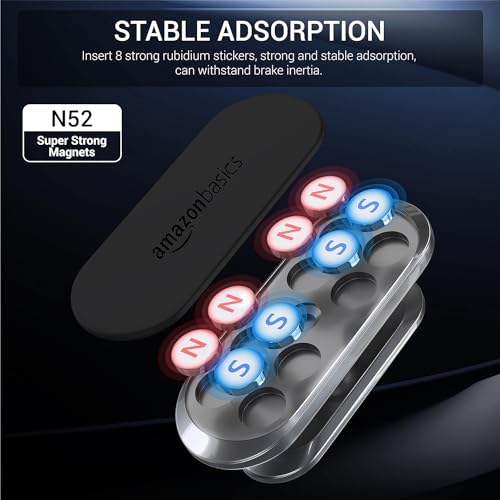 amazon basics Original ONE Touch USE Technology Magnetic Mobile Holder for Car Dashboard | (World’s Strongest and Safest Magnets) | Can be Used in Car, Bike, Scooter, Desk, Office, Home Black