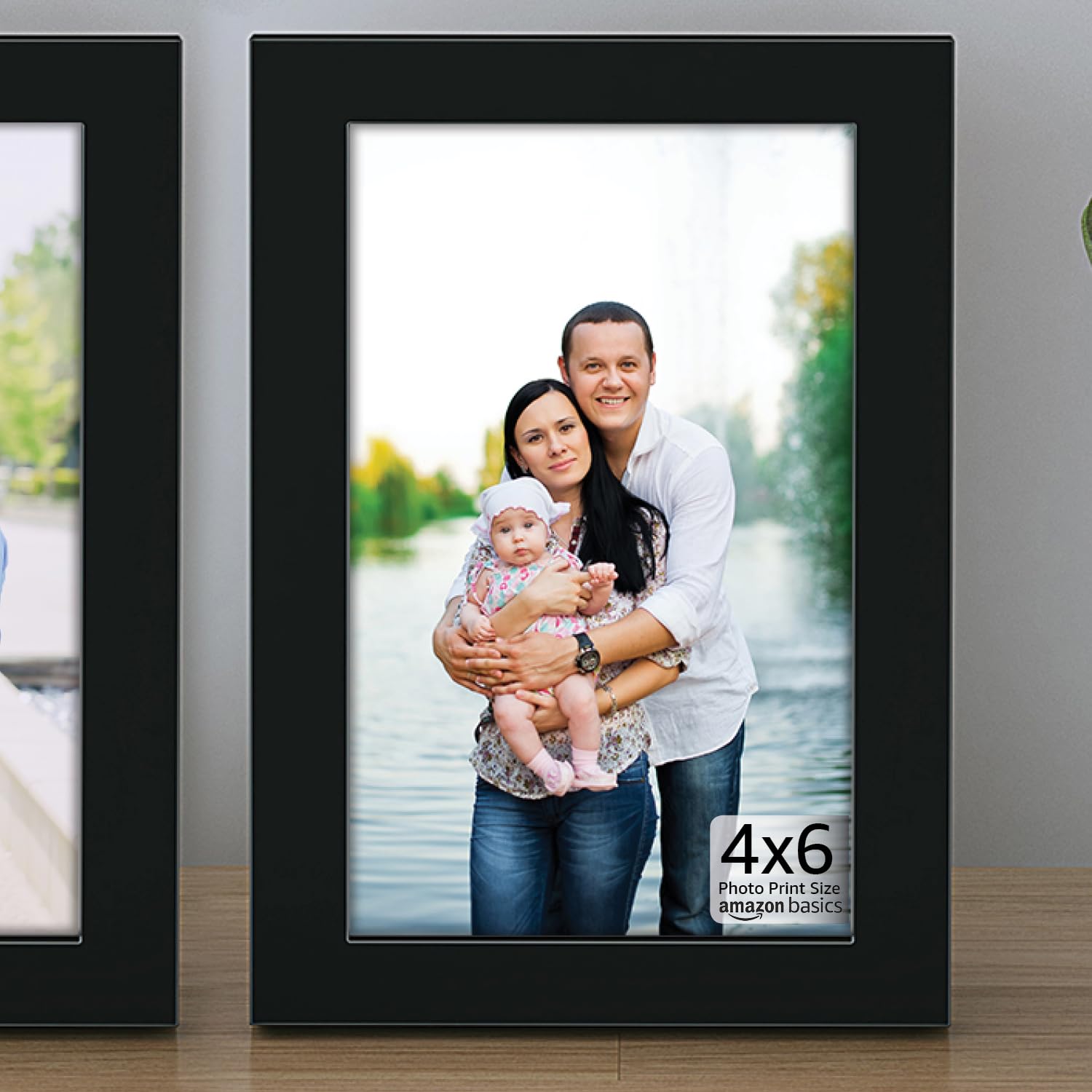 amazon basics Wood Photo Frame Set Of 2 | Rectangular | Wall Mount & Tabletop Stand (Black), 15.2L X 10.2W CM