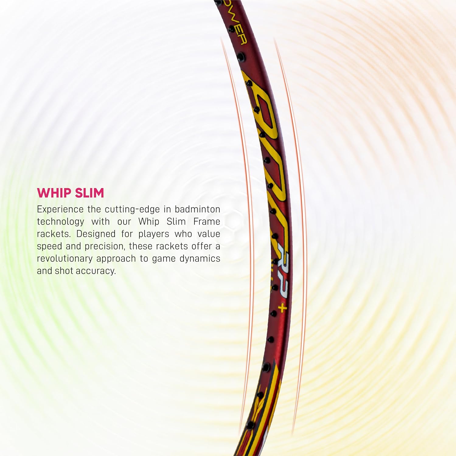 Whip Slim Frame: The streamlined and slender frame construction reduces air resistance, allowing players to maneuver the racket swiftly through the air.