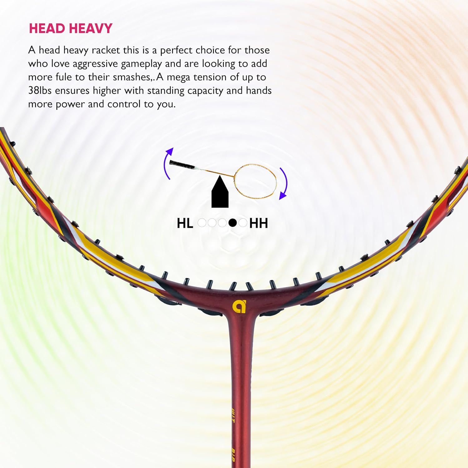Max Tension upto 38 LBS: Designed to handle incredible tension levels of up to 38 pounds. This feature allows players to string the racket at higher pressures, resulting in greater power and accuracy in their shots.