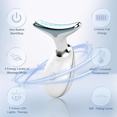 This multifunctional face neck massager has 7 different LED light modes that are not only suitable for massaging the face, neck but also can be used to massage the arms, shoulders and other parts, tightening the sagging skin and relaxing the muscles.