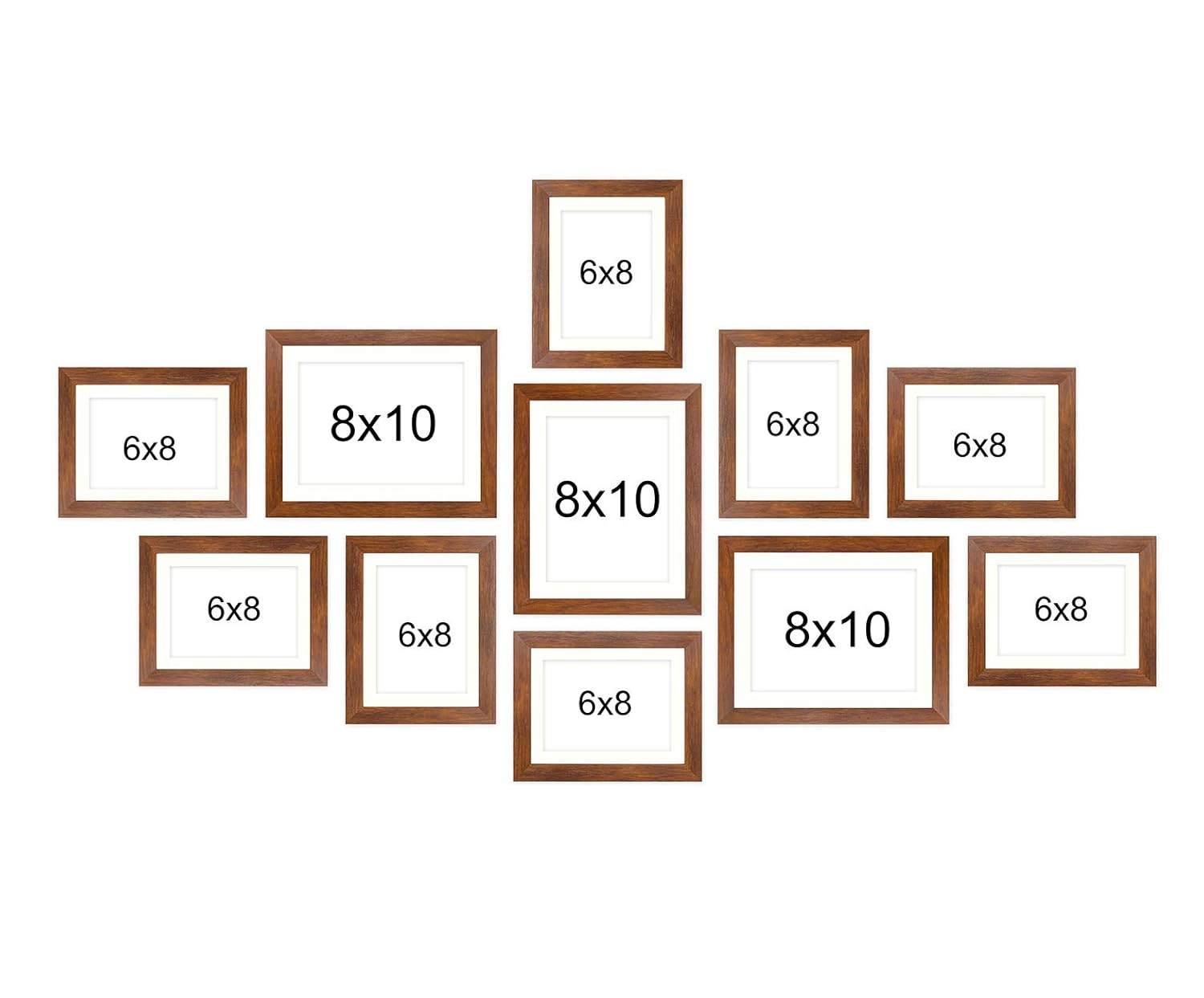 Photo Size : 3 piece : 8″ x 10″, 8 piece : 6″ x 8″ (White matt board included) Total Wall Size : 32″ x 60″, Photo pieces hang both vertically and horizontally with secure hanging hardware included with each photo Frame – Easy Installation guide included.
