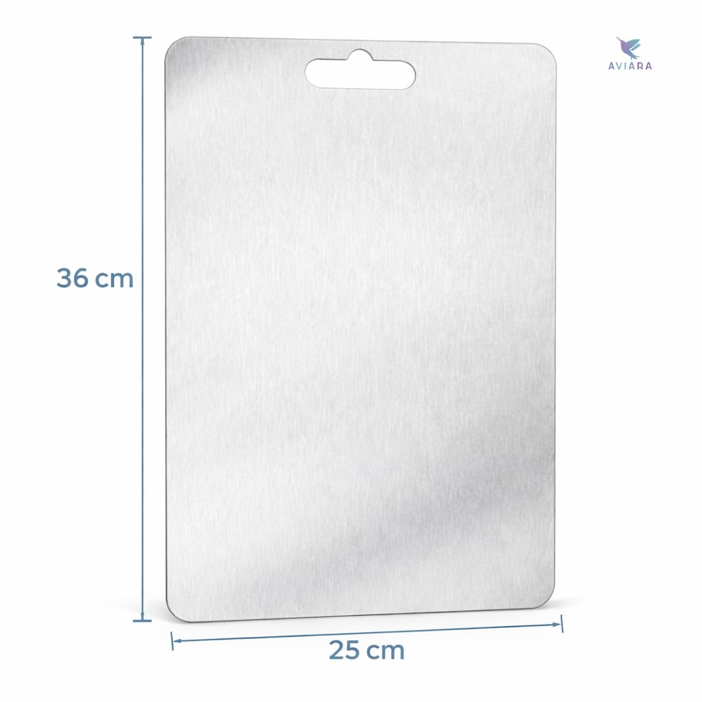 AVIARA SS-304 Stainless Steel Cutting Board, 36×25 cm, 1mm Thickness, Rust Resistant, for Chopping and Cutting Vegetables, Fruits, Meat, Fish, Bread