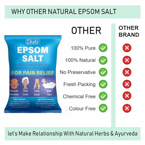 Specification: Chstr Epsom Salt For Pain Relief Epsom Salt For Foot Epsom Salt For Bath Epsom Salts For Feet Pain For Muscle Relief, Relieves Aches & Pain Epsom Bath Salt Crystal and Bath (2Kg)