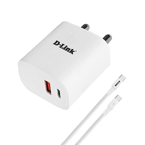 Specification: D-Link 33W Dual Port Fast Charger Type-C & Usb-A For All Mobiles Phones,Tablets,Power Banks,Smart Watches,Earbuds. Bis Certified,Compact Size & Easy To Carry. Free Type C To Type C 3A(60W) Cable-White