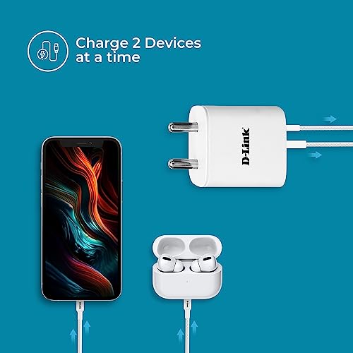 D-Link 33W Dual Port Fast Charger Type-C & Usb-A For All Mobiles Phones,Tablets,Power Banks,Smart Watches,Earbuds. Bis Certified,Compact Size & Easy To Carry. Free Type C To Type C 3A(60W) Cable-White