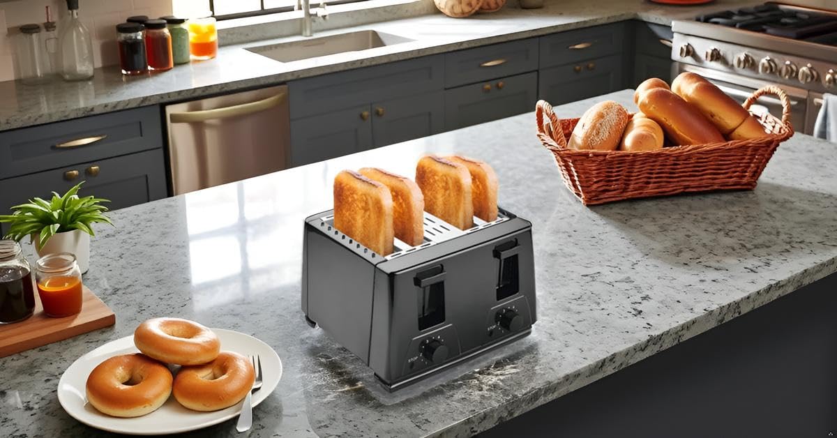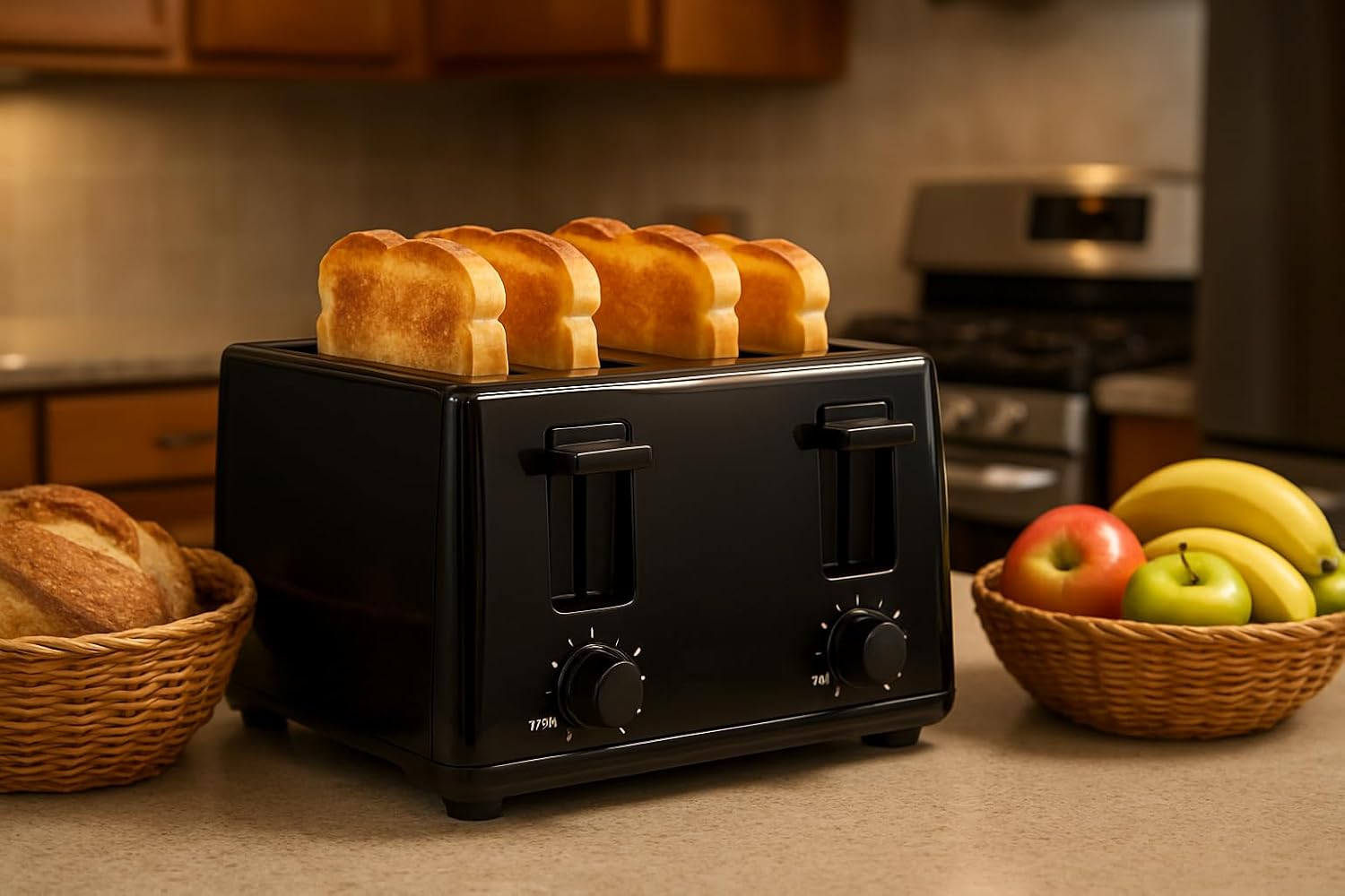 🍞 4 Extra-Wide Slots – Toasts thick bread slices, waffles, bagels, and more with ease, perfect for a family breakfast.