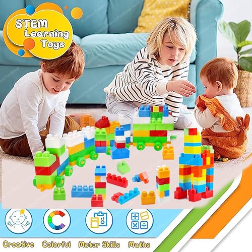 FunBlast Building Blocks for Kids with Wheel, 64 Pcs with 16 Movable Wheels Big Mega Sized Blocks, Block Game for Kids/Boys/Children (64 Pcs & 16 Wheels) – Multicolor