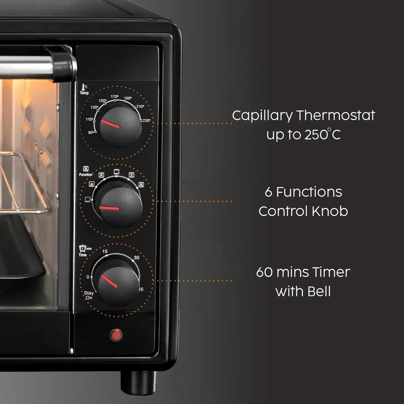 𝗠𝘂𝗹𝘁𝗶-𝗙𝘂𝗻𝗰𝘁𝗶𝗼𝗻 𝗖𝗼𝗼𝗸𝗶𝗻𝗴: Glen OTG for kitchen can Bake, roast, grill, and warm your favorite dishes with versatile cooking options.