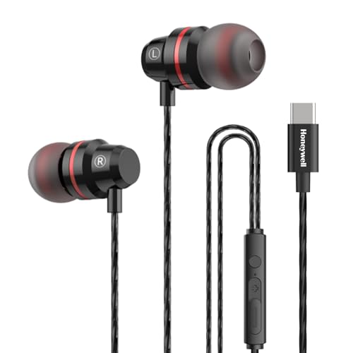 Honeywell Suono P60 Wired Earphones with Built in Mic, 10mm*2 Drivers, Passive Noise Cancellation, Deep Bass & Clear Sound, Ultra HD Mic Quality, Type C Compatible, Voice Assistant Enabled, 1.2 Mtr