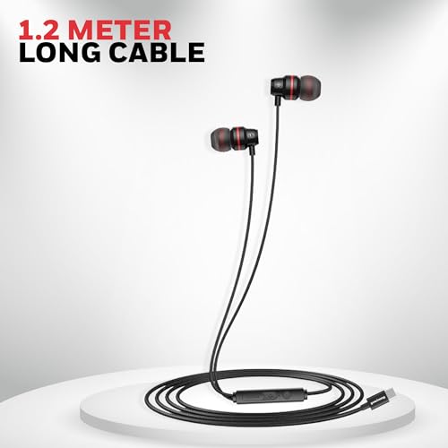 Specification: Honeywell Suono P60 Wired Earphones with Built in Mic, 10mm*2 Drivers, Passive Noise Cancellation, Deep Bass & Clear Sound, Ultra HD Mic Quality, Type C Compatible, Voice Assistant Enabled, 1.2 Mtr