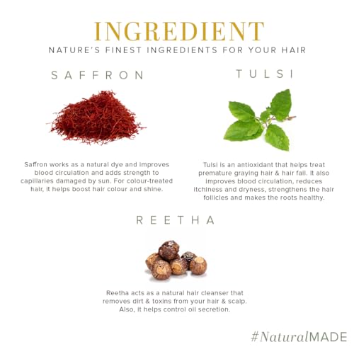 Khadi Natural Saffron, Tulsi & Reetha Hair Shampoo| Herbal Hair Cleanser for Thick Hair | Anti-Dandruff Shampoo | Suitable for All Hair Types| 210ml
