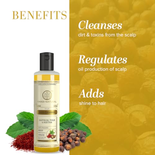 Specification: Khadi Natural Saffron, Tulsi & Reetha Hair Shampoo| Herbal Hair Cleanser for Thick Hair | Anti-Dandruff Shampoo | Suitable for All Hair Types| 210ml