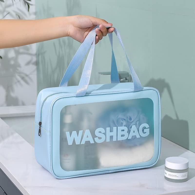 KUKLAR Wash Bag Pouch for Travel Kit Toiletry Bag Cosmetic Bag Make Up Box for Brushes, Accessories with Handle, Large Capacity Translucent Waterproof Travel Storage Organizer (Sky Blue)