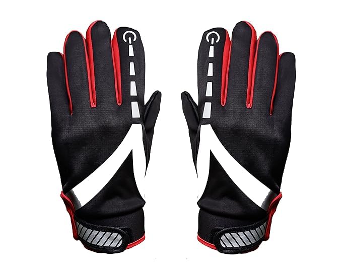 Lightweight Reflective Running Gloves – Hi-Vis Touchscreen Sports Gloves for Jogging at Night and Winter Activities (Red, L)