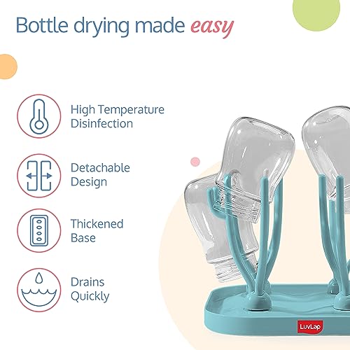 LuvLap Baby Bottle Drying Rack with Branch Shaped Dryer – Complete Solution for Pacifier, Brush, and Accessories: Easy Sterilization, Cleaning, Storage & Travel (Light Blue)