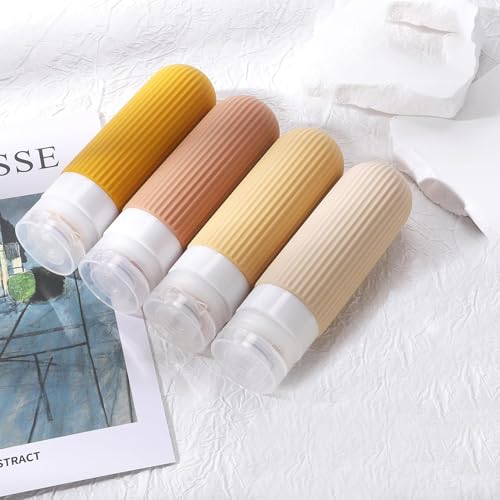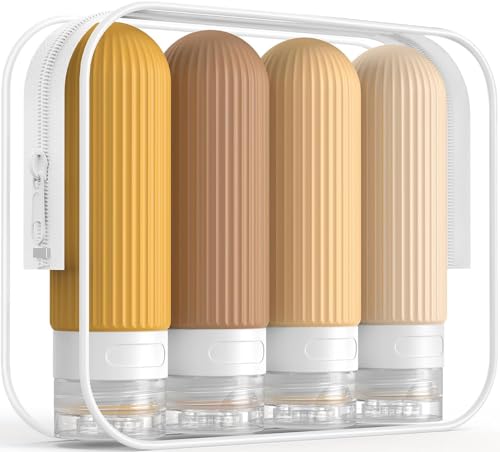 Lyrovo Travel Bottles for Toiletries Organizer BPA Free 90ml Silicone Size Containers Portable Split Bottle Accessories for Conditioner Shampoo Lotion – 4 Pack
