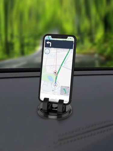 360 Degree Rotating Car Dashboard Sticky Phone Holder Car Mounted Mobile Phone Stand Mount With Universal Car Cell Phone Car Phone Mobile Phone Smart Car Mount Near Air Vent. ✅ 360-Degree Rotation: This phone holder features a fully adjustable 360-degree rotating mechanism that allows you to easily adjust the angle of your phone. Whether you want to view your device in portrait or landscape mode, the holder can be positioned for optimal viewing, making navigation or hands-free calls more convenient.. ✅ Strong Sticky Adhesive Base: The holder is equipped with a strong sticky adhesive that can be attached securely to your cars dashboard. The adhesive ensures that the holder stays firmly in place, even on bumpy roads, without damaging the dashboard. It also allows for easy removal and reapplication without leaving any residue behind.. ✅ Universal Compatibility: Designed to fit a wide range of smartphones, this phone holder accommodates devices of various sizes, from smaller smartphones to larger ones. Its adjustable clamp mechanism provides a snug fit, ensuring your phone stays securely in place during the ride, irrespective of the model or brand.. ✅ One-Hand Operation: The design of the holder allows for one-hand operation, making it easier to insert or remove your phone without having to fiddle with complicated mechanisms. This hands-free operation makes it safe and convenient to use, allowing you to keep your focus on the road while still having easy access to your phone.. ✅ Durable and Heat-Resistant Material: Constructed from high-quality, heat-resistant materials, this phone holder is built to withstand the extreme temperatures of a car interior. Its durable design ensures long-lasting use without warping or losing its grip, even during hot summer days. This durability makes it a reliable accessory for everyday driving.
