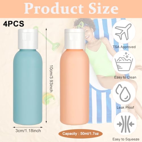 GREAT VALUE PACK: Including 4pcs different color empty toiletries travel bottles, convenient for your classify different product. Whether youre traveling by air or car, these toiletry bottles comply with TSA regulations, comfortably fitting in your carry-on luggage for stress-free and effortless travels.