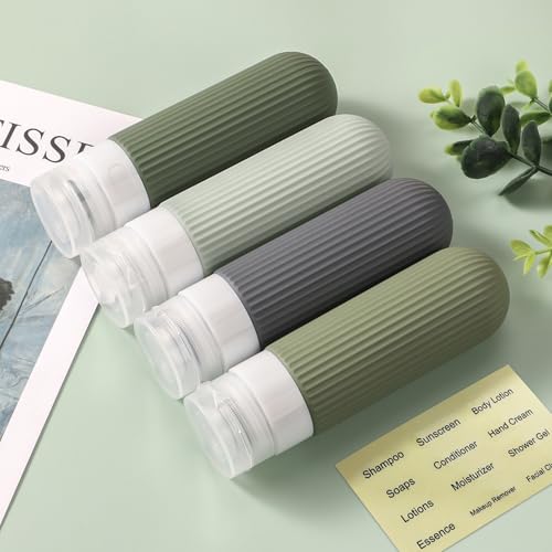 Specification: ME.FAN Travel Bottles for Toiletries, TSA Approved 3oz Silicone Travel Size Containers/Portable Split Bottle, Travel Accessories for Conditioner, Shampoo, Lotion – 4 Pack Desert Sage