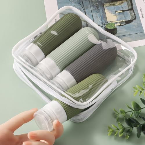 ME.FAN Travel Bottles for Toiletries, TSA Approved 3oz Silicone Travel Size Containers/Portable Split Bottle, Travel Accessories for Conditioner, Shampoo, Lotion – 4 Pack Desert Sage