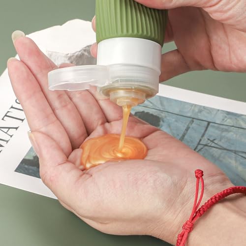 Food Grade Silicone & Long-term Use: Those travel bottles are made from food-grade silicone, heat resistant, no smell and non-stick. The Soft bottle body, smooth when squeezed without holding, no residue. You can squeeze out even a small amount of lotion in the bottle